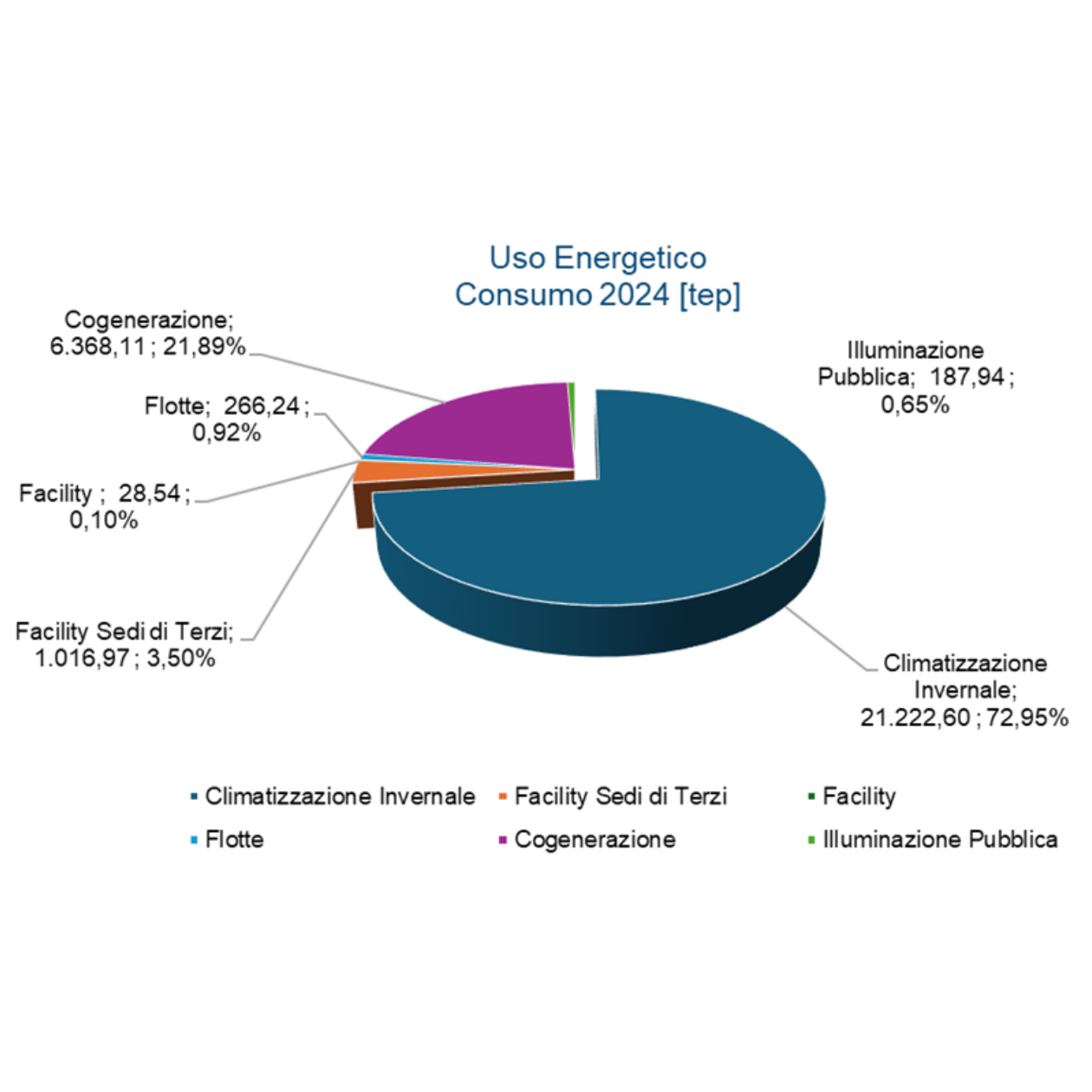 L'obiettivo di efficienza annuale definito per il 2024 ammontava a 700 tep. Grazie all’azione commerciale messa in atto nell’erogazione del servizio energia al settore dei condomini e alla conclusione di importanti lavori nel settore Power, il risultato raggiunto è stato pari a circa 1320 tep.