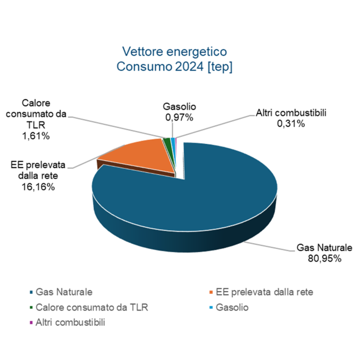 Il grafico illustra le quote di energia consumata per vettore energetico registrate nel corso del 2024